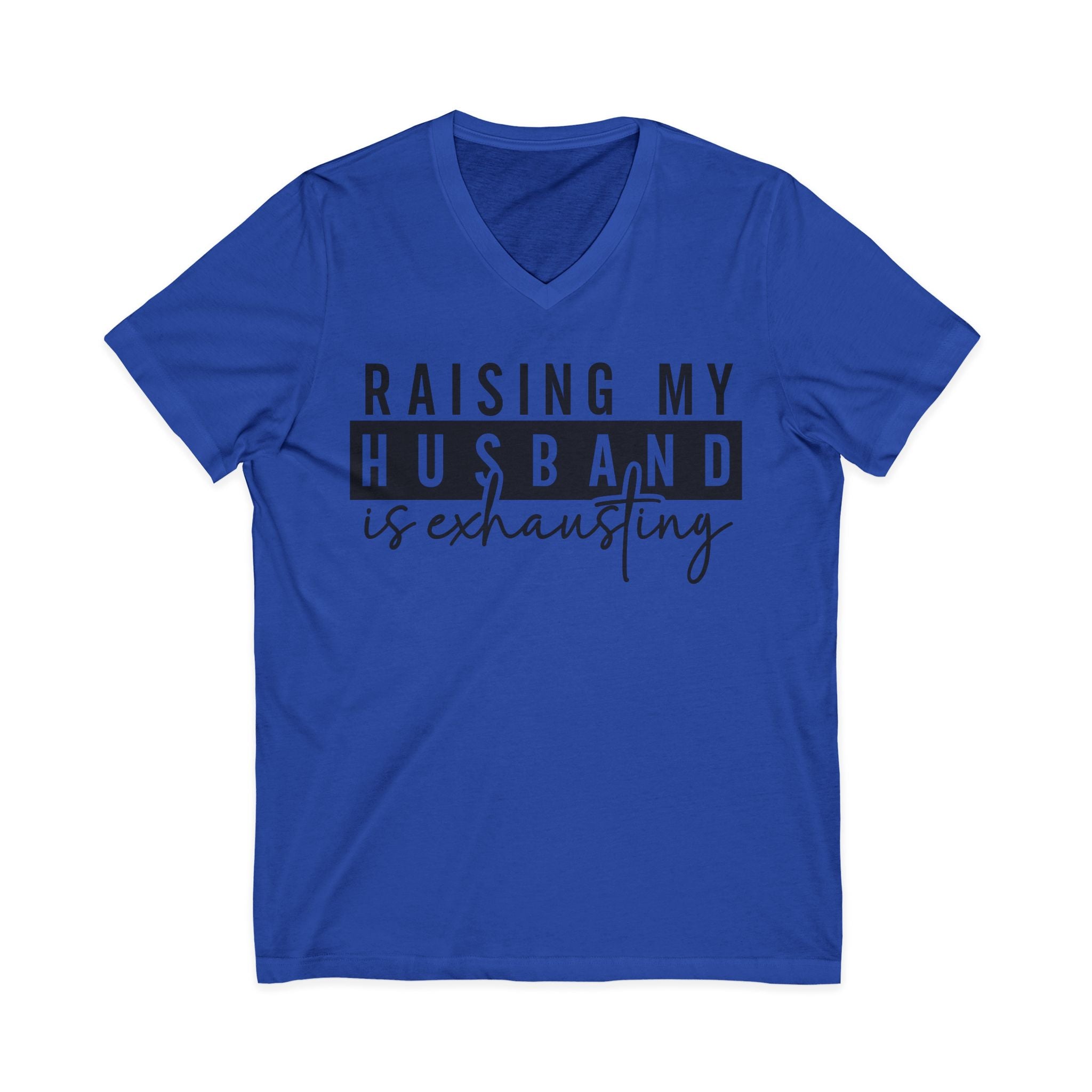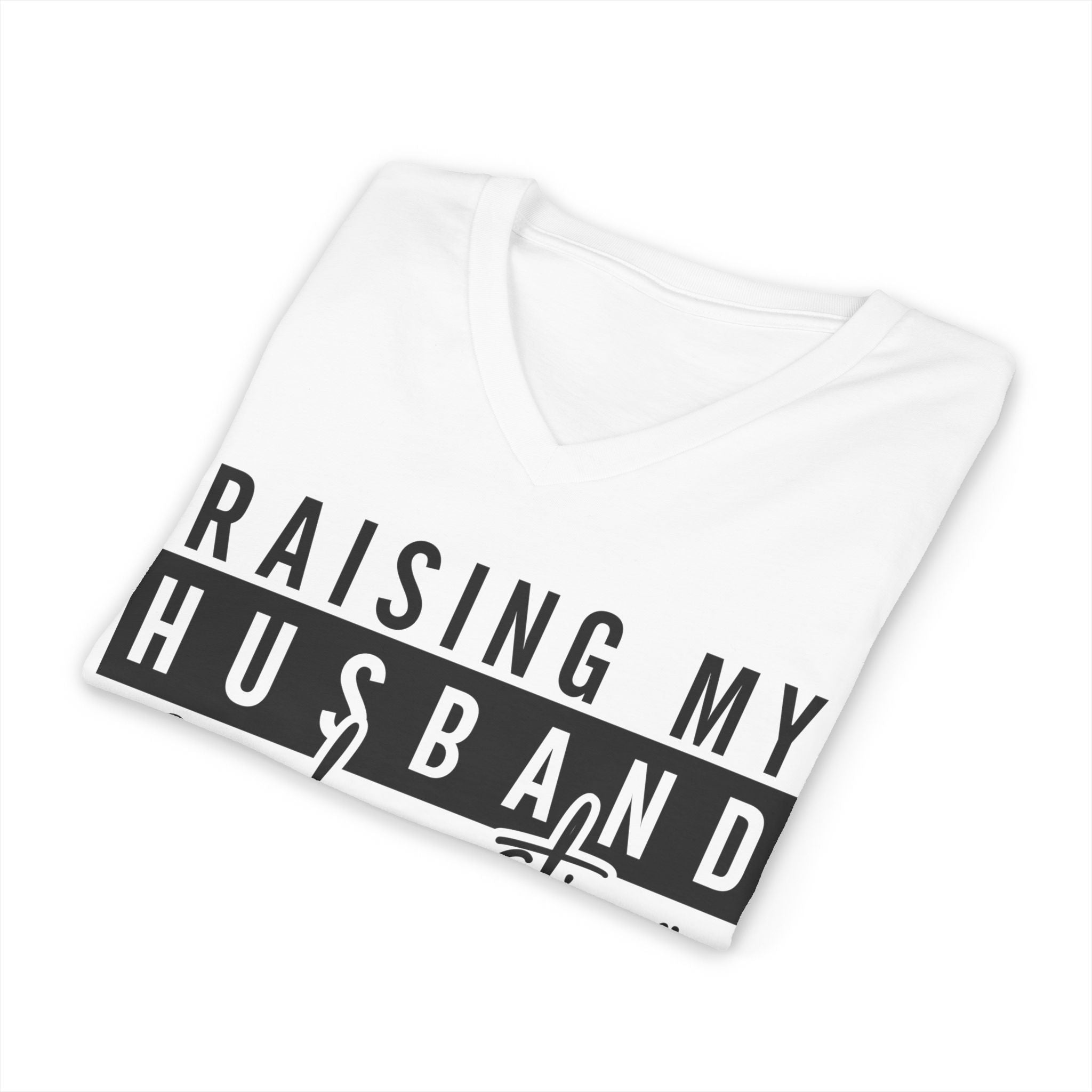 XS S M L XL 2XL 3XL Width, in 16.50 17.99 20.00 22.01 23.98 25.98 27.99 Length, in 26.73 27.72 28.74 29.72 30.75 31.73 32.72 Sleeve length, in 8.62 8.90 9.17 9.45 9.72 10.00 10.39 Lightweight and soft, this V-neck tee carries a wry, relatable message for parents who juggle more than they expected. The clean black-and-white typographic design reads like a private joke — bold block letters framed across the chest with a handwritten script beneath — so it looks casual but confident. Wear it around the house, to school pickups, or out for a coffee when you need a laugh and a little solidarity. The V-neck and retail fit create a flattering silhouette while the breathable cotton keeps you comfortable through busy days.