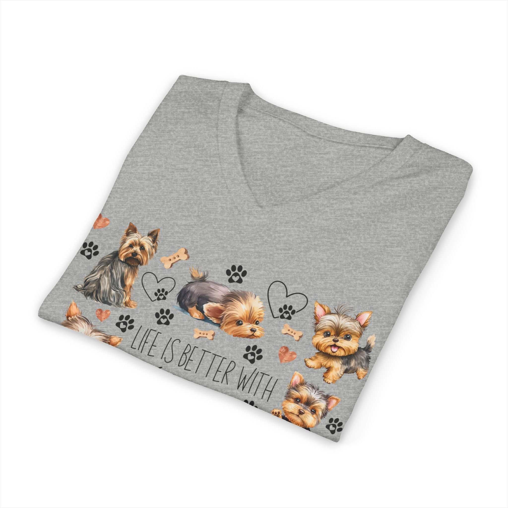 Embrace your love for Yorkies with this charming unisex jersey short sleeve V-neck tee. Perfect for Yorkie lovers, this shirt radiates warmth and joy, making every day feel like a celebration with your furry friends. Its stylish silhouette is suited for casual outings or semi-formal occasions, ensuring you always look your best while showcasing your passion. Ideal for gifting on holidays like National Dog Day, or simply as a treat for yourself, it connects you with fellow dog enthusiasts. Enjoy a comfortable wearing experience while expressing your joy for life with every paw print!