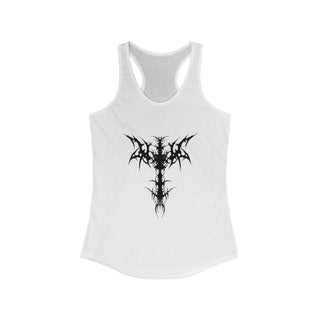 Racerback tank with an ornate black bat design for bold, gothic-chic style