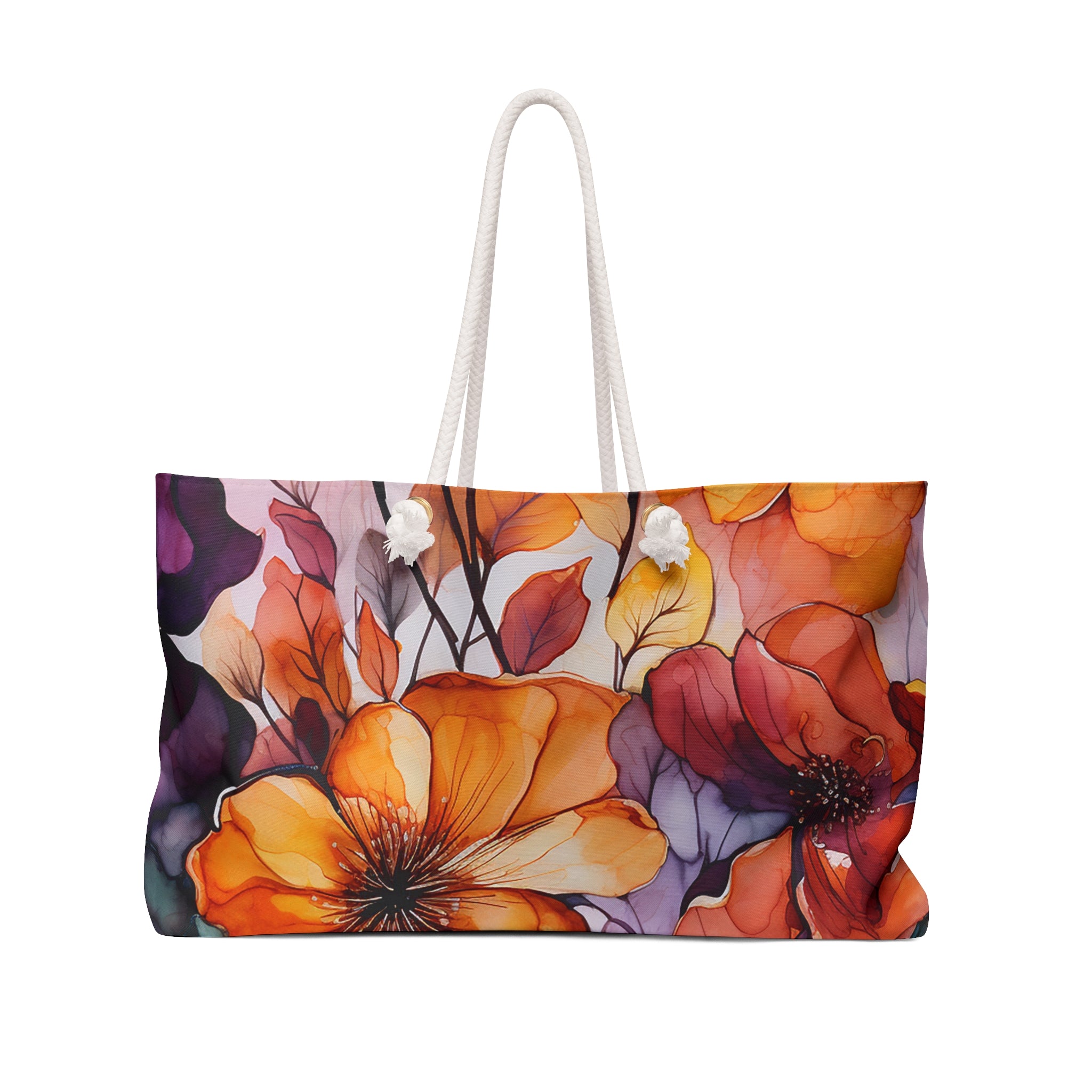 24" × 13" Length, in 24.02 Height, in 12.99 Width, in 5.51 Handle height, in 11.42 This watercolor weekender bag exudes a casual yet chic vibe, perfect for weekend getaways or short trips. The soft colors and spacious interior make it ideal for those who enjoy traveling in style. Ideal for travelers, vacation-goers, and weekend adventurers. Relevant for holidays, vacations, and weekend trips.
