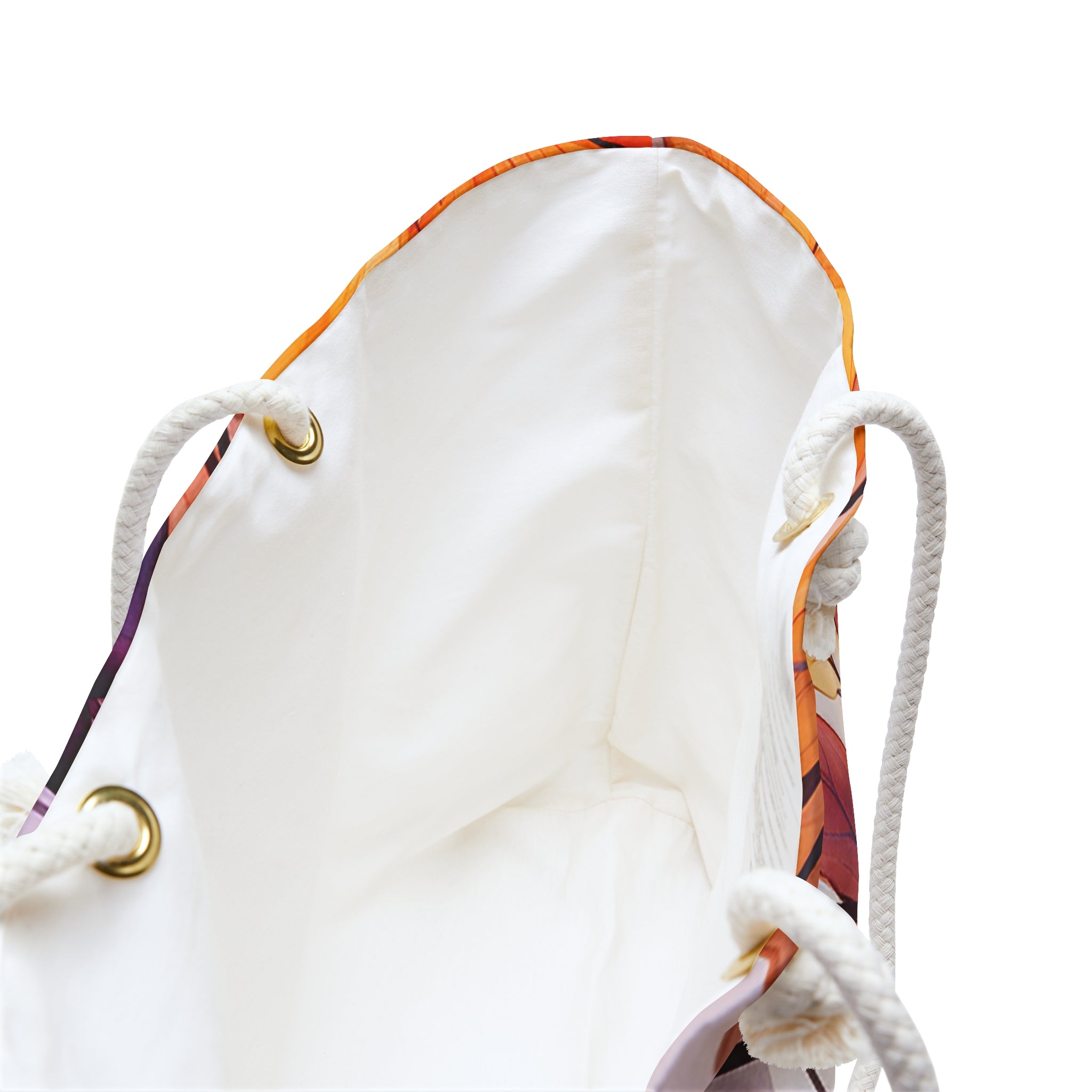 - Cotton rope handles with gold color metal grommets