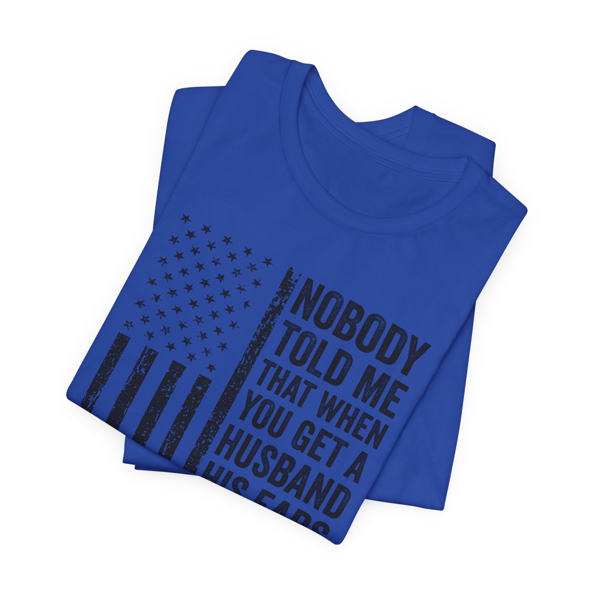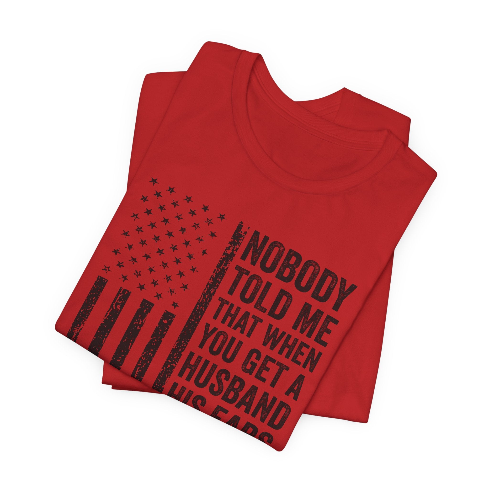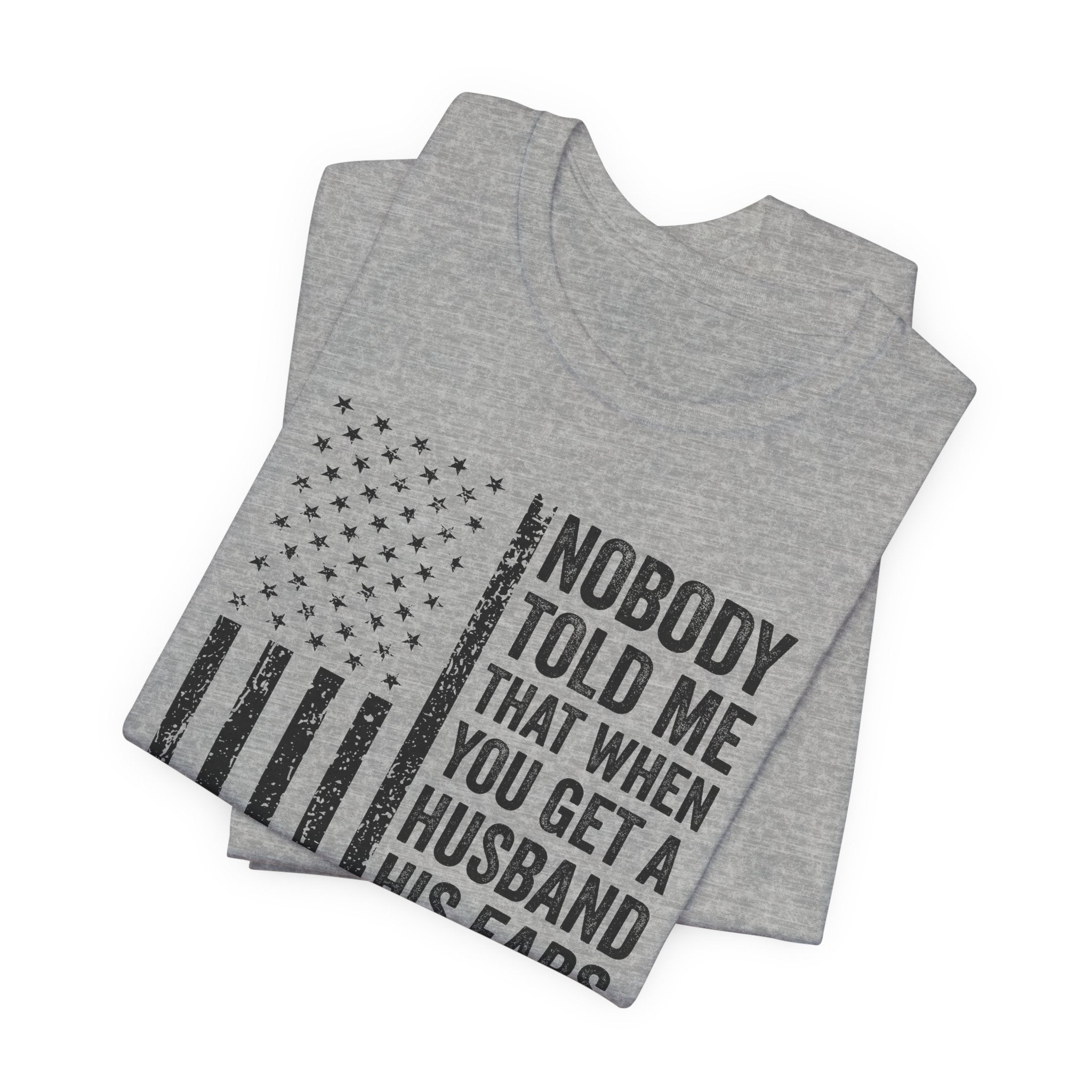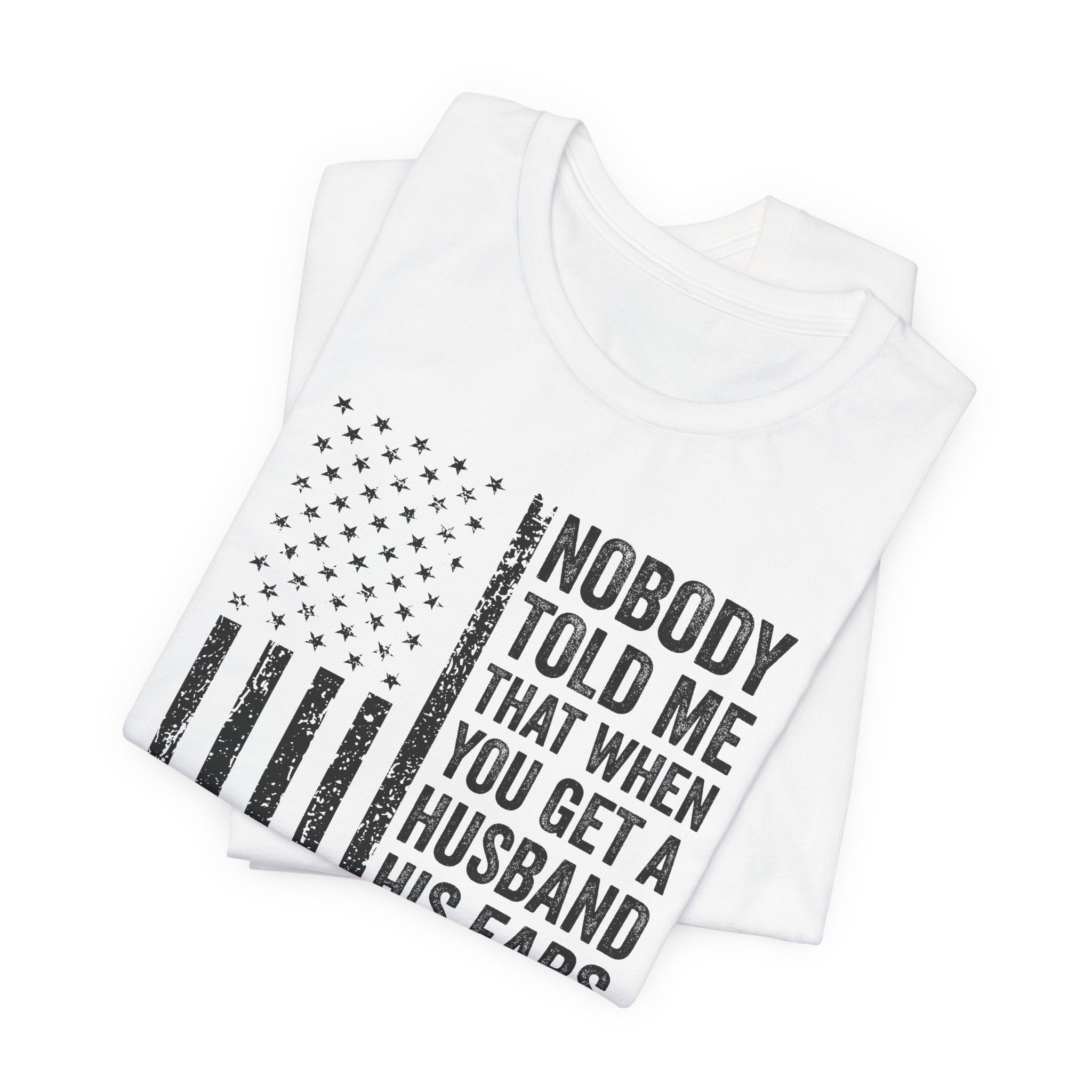 This lightweight jersey tee carries a wink and a roar—bold text declaring "Nobody Told Me That When You Get a Husband His Ears Are Sold Separately" set against a patriotic flair. It wears like a casual statement: breathable Airlume cotton that moves with you, a crisp crew neck that stays neat, and a clean retail fit that layers easily from backyard barbecues to backyard debates. The printed sleeves and label retain sharp detail, while durable side seams and shoulder taping keep the shirt looking sharp after many wears. Made with ethical manufacturing standards and REACH-compliant materials, this tee blends comfort, attitude, and attention to quality for adults who love humor that lands with a wink rather than a whisper.