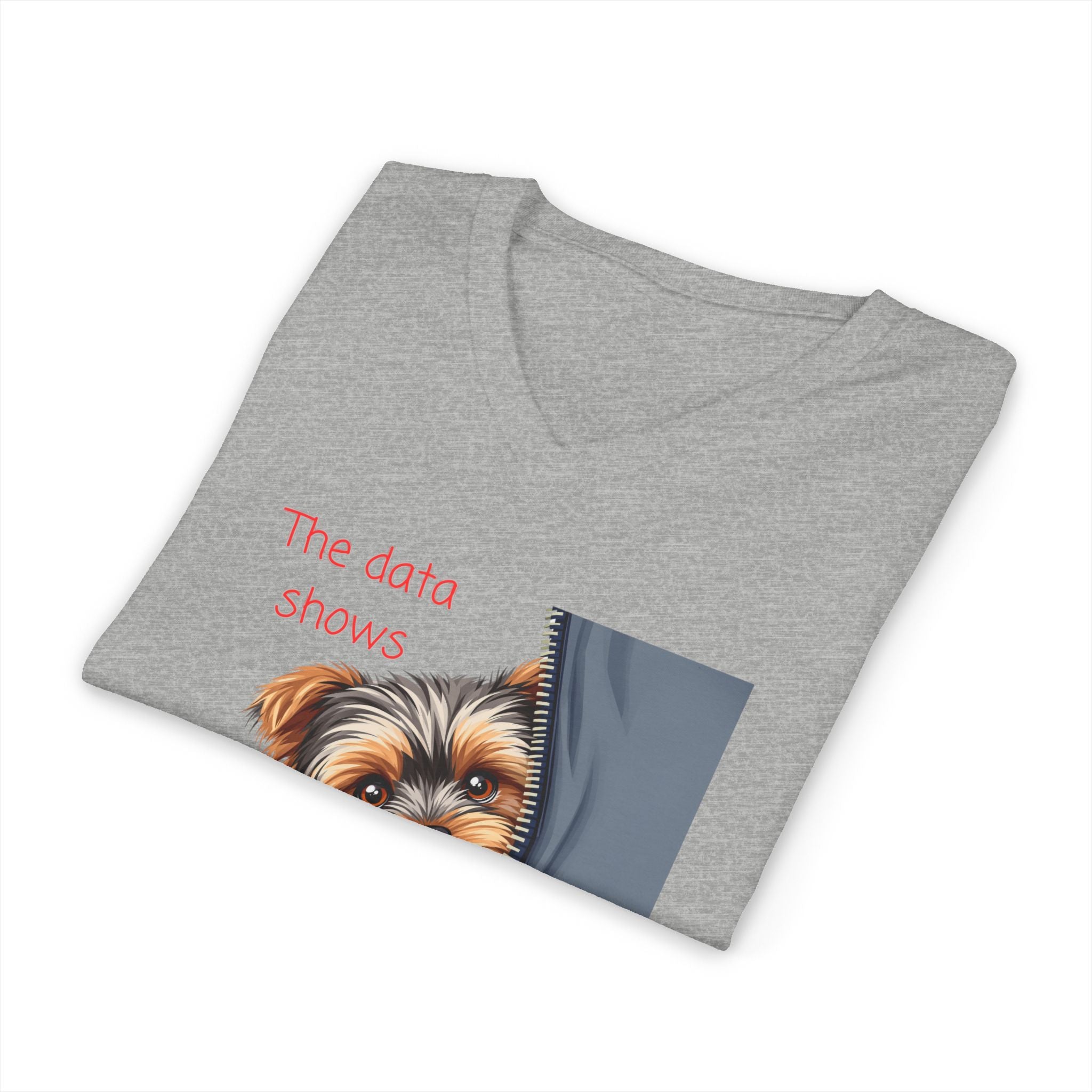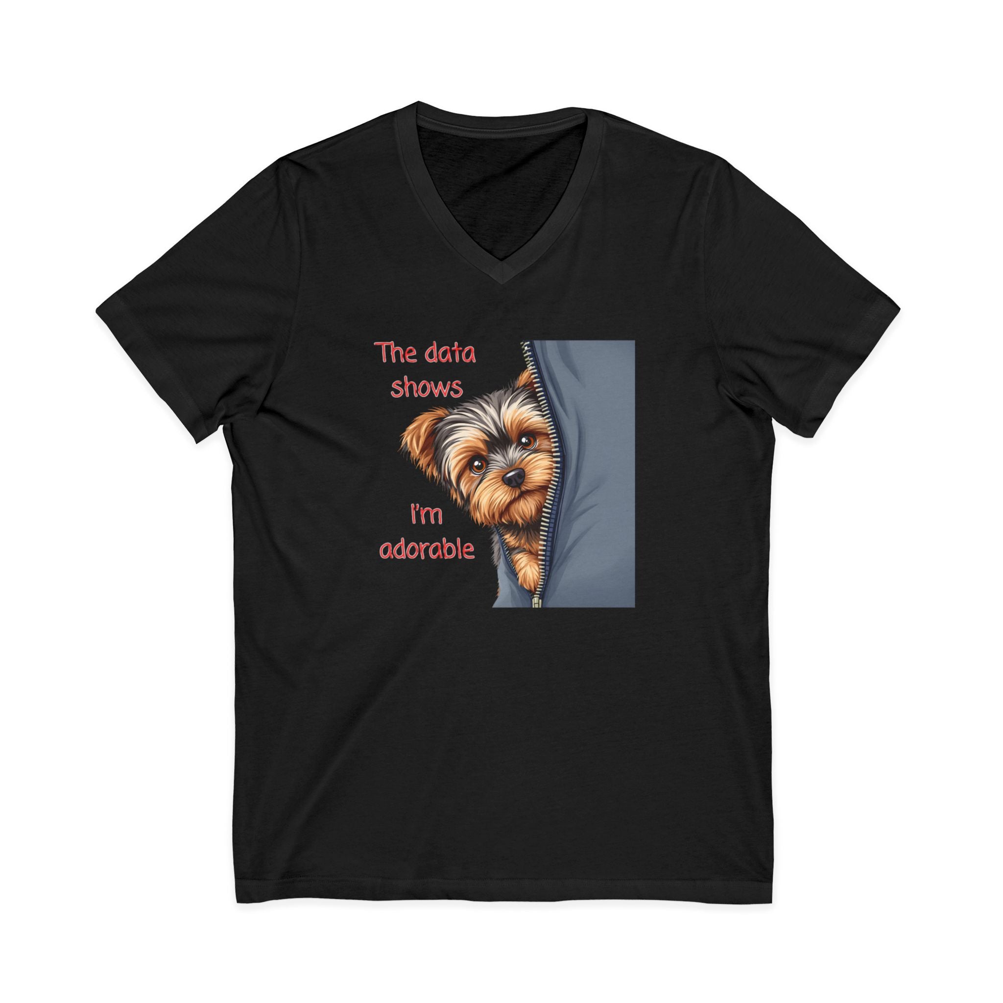 XS S M L XL 2XL 3XL Width, in 16.50 17.99 20.00 22.01 23.98 25.98 27.99 Length, in 26.73 27.72 28.74 29.72 30.75 31.73 32.72 Sleeve length, in 8.62 8.90 9.17 9.45 9.72 10.00 10.39 Lightweight and playful, this V-neck tee declares your confidence with a wink: "The Data Shows I'm Adorable." Soft 100% cotton (or thoughtfully blended heathers) drapes in a retail fit that flatters without fuss. Subtle shaping from side seams and a ribbed knit collar keep the silhouette tidy; shoulder tape stabilizes the back for lasting wear. Breathable and easy to layer, it moves from casual coffee runs to late-night coding sessions, showing off a sense of humor and a love of clever detail. Ethically made and thoughtfully finished with a tear-away label, this tee feels as good as it looks.